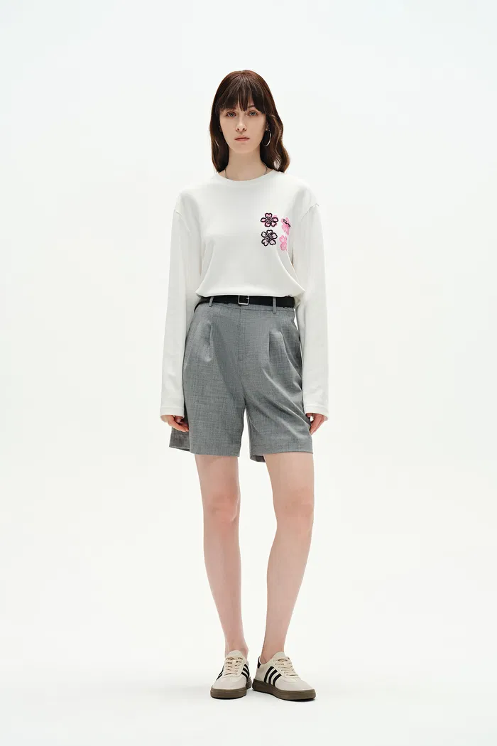 A long-sleeve continuation of the artistic journey. Crafted from premium Pima cotton, this t-shirt extends the story of unexpected urban beauty. Soft white fabric becomes a canvas for carefully placed floral designs, offering a layering piece that speaks volumes without trying too hard.