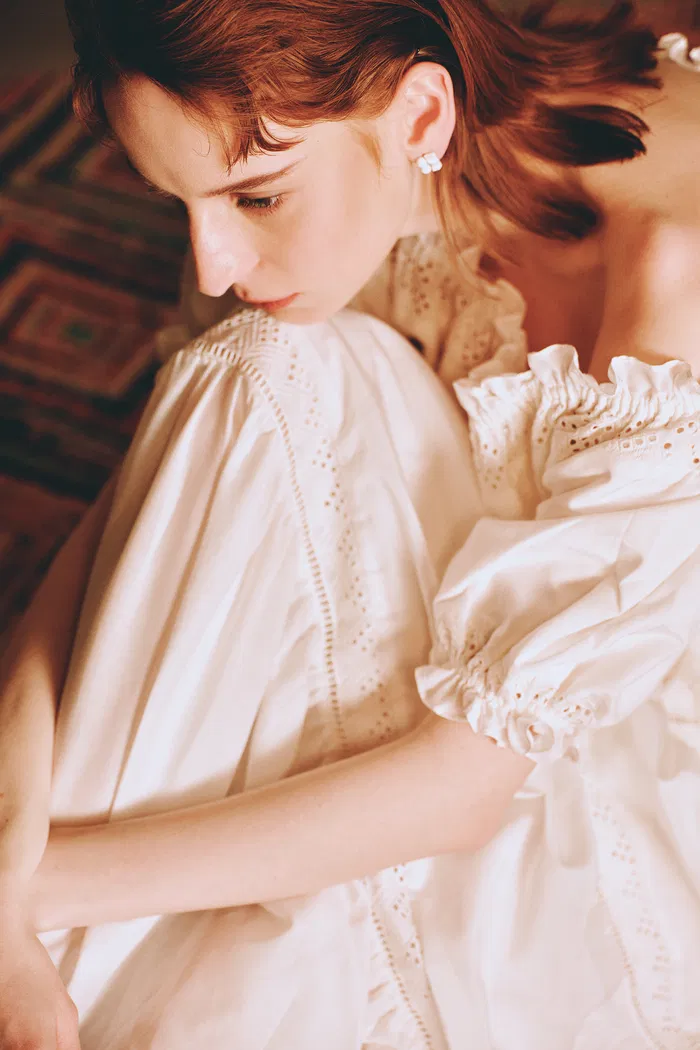 Luise Off-Shoulder Puff Sleeve Top in Silk Cotton