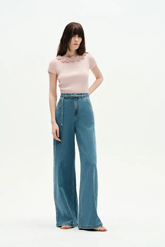 A romance knitted into fabric. Silk-cotton blend meets artisan craftsmanship, with hand-crocheted roses blooming across a perfectly tailored sweater. The boat neck and delicate short sleeves capture a poetic moment of spring, transformed into wearable art.