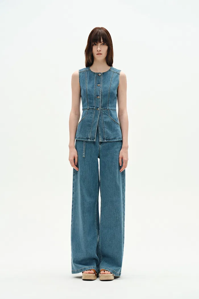 Selena Sleeveless Vest Top in Technical Lyocell Denim