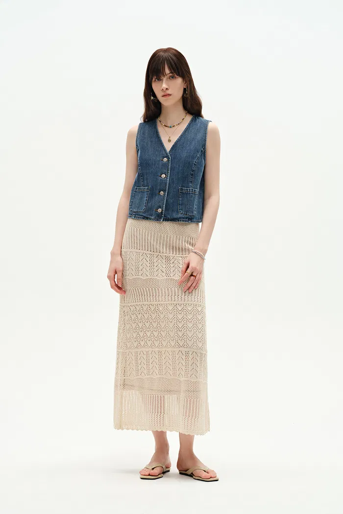 If you're looking for the perfect summer vest, here it is. Our V-neck denim piece comes with just enough structure while staying breathable. Those curved pockets? They're your new favorite detail for keeping essentials close.